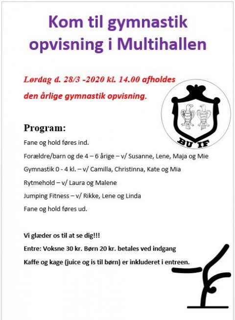 Der afholdes gymnastikopvisning d. 28. marts 2020